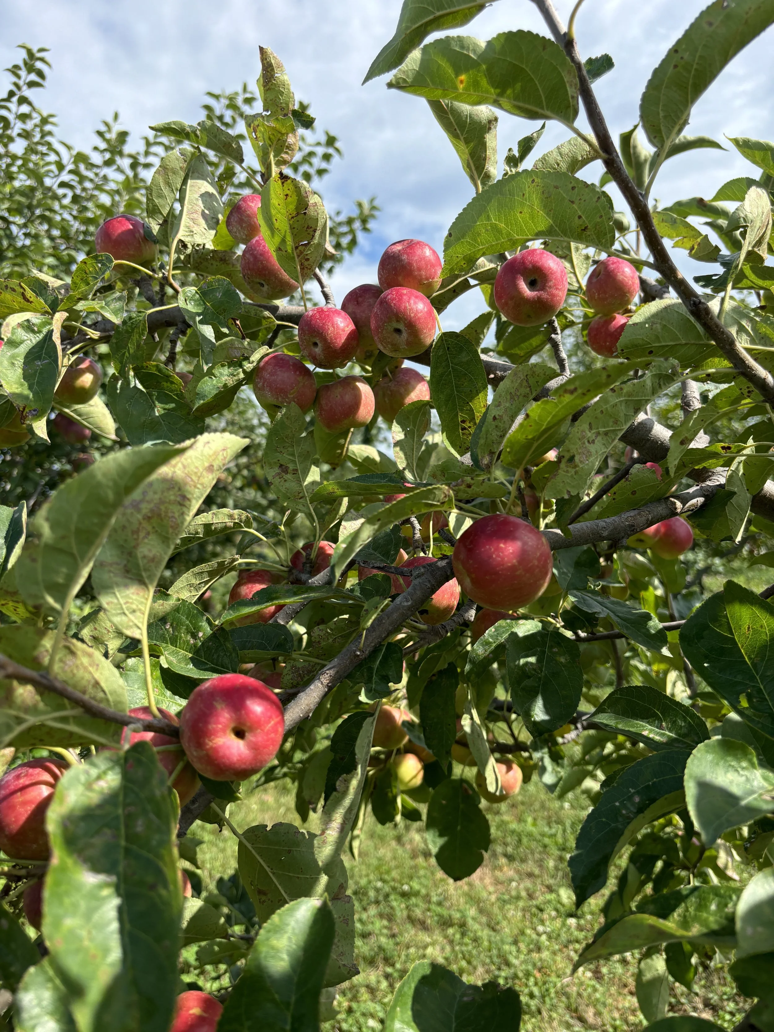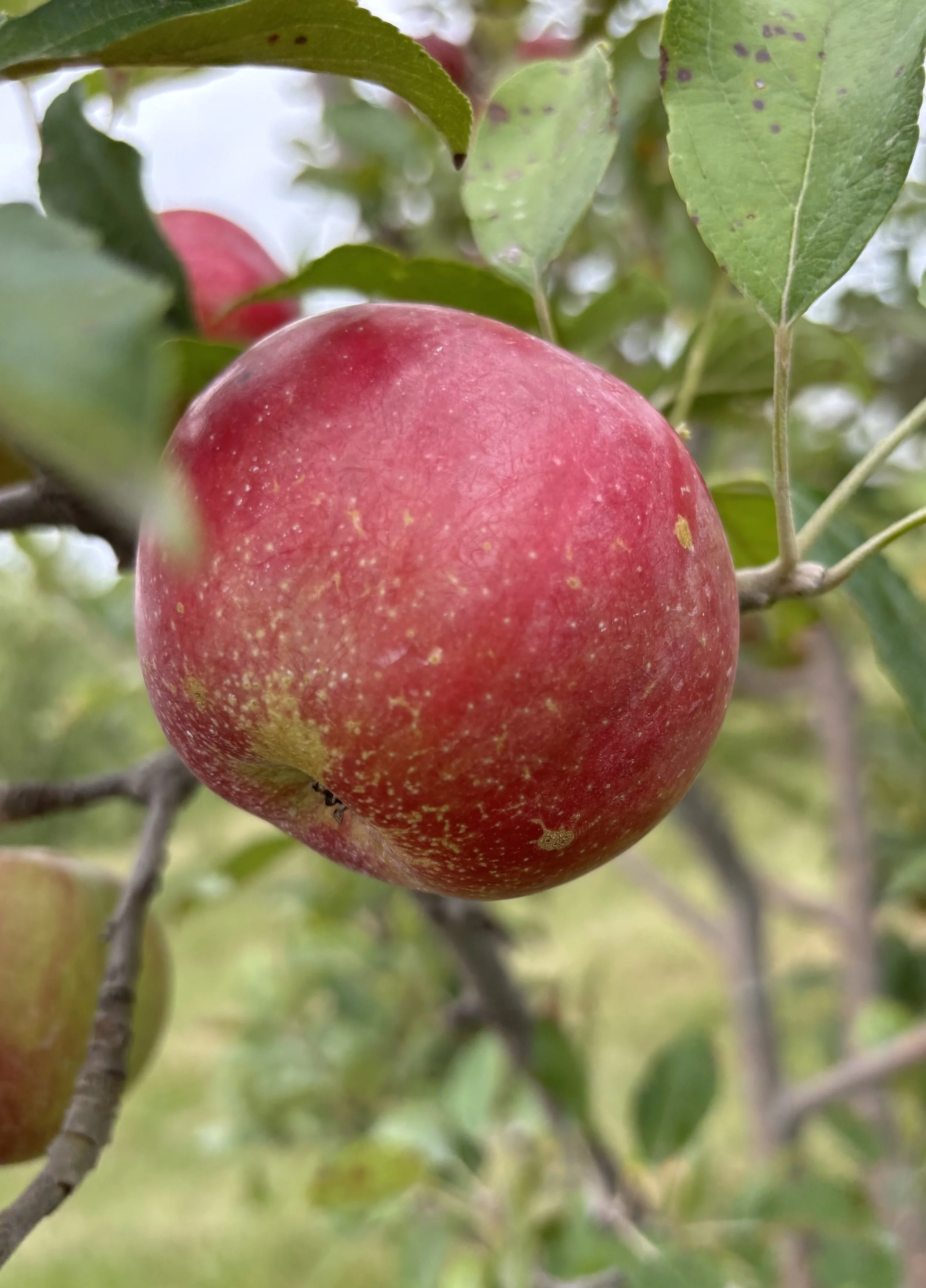 Nova Spy is a large, red, crisp, and juicy with a sharp tang for a nice sweet-tart balance. This apple is excellent for processing into sauce, jelly, baked goods, and juice. Available late September.
